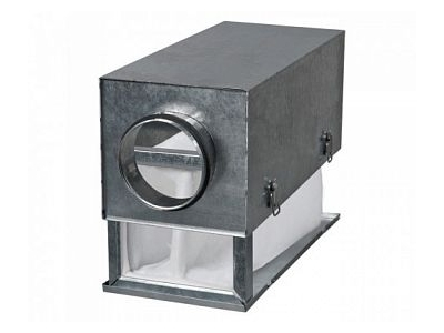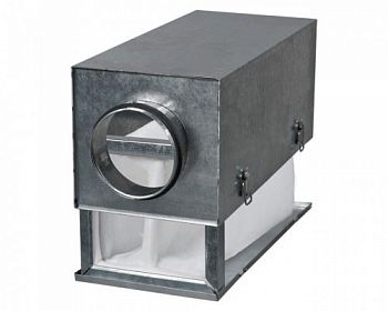 Конструкция Корпус изготовлен из оцинкованной стали. Фильтр-бокс оснащен соединительными фланцами с резиновым уплотнением для герметичного соединения с воздуховодами. Откидная крышка фильтра оборудована рычажными замками для быстрого доступа к сменному фильтрующему элементу. Фильтрующий элемент карманного типа изготовлен из нетканого полотна из синтетических волокон и зафиксирован на рамочном каркасе из оцинкованной стали. Фильтры изготавливаются из материалов классом очистки G4, F5, F7.