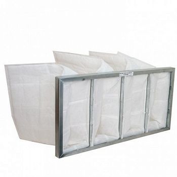 Фильтрующий материал выполнен в виде кассеты с мешочными фильтрами из синтетического волокна, имеющего класс очистки EU4, EU5, EU7. Устанавливается в горизонтальном или вертикальном положении. При вертикальном монтаже воздушный поток должен быть направлен вниз так, чтобы карманы фильтра не сминались.