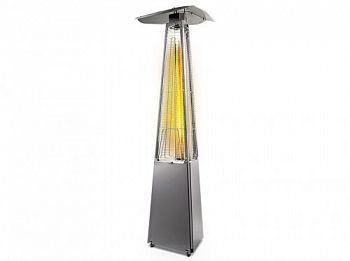Уличный камин изготовлен из устойчивой к коррозии легированной нержавеющей стали и защищен от попадания атмосферных осадков сверху четырехгранным отражателем, площадь поверхности которого составляет 0,5 м². За безопасность эксплуатации отвечает многоуровневая система защиты. Датчик наклона отключает пламя при наклоне газового обогревателя более чем на 45°, термоэлектрический датчик и электромагнитный клапан сразу же останавливают подачу газа в критических ситуациях, таких как затухание пламени или утечка газа. За счёт встроенной колёсной базы обогреватель свободно и безопасно можно перемещать по любой поверхности.