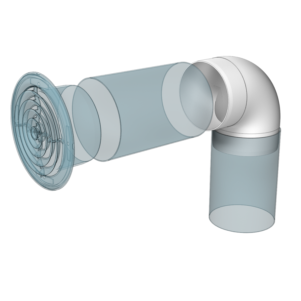 - Для соединения воздуховодов соответствующего диаметра под углом 90°.