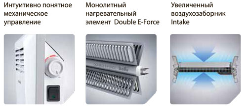 Отличительные особенности - Монолитный нагревательный элемент Double E Force c ресурсом работы 25 лет