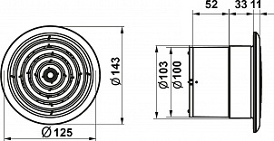 Предназначен для монтажа в вентиляционную шахту, соединения с гибким воздухоотводом или ПВХ каналом.