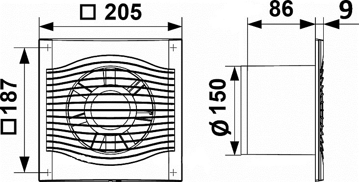 Накладной вентилятор Эра с антимоскитной сеткой E 150 S