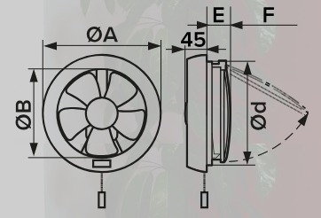 - Осевой оконный вентилятор с обратным клапаном для вытяжной вентиляции.