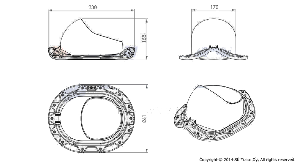 MUOTOKATE проходной элемент для монтажа на металлических кровлях с профилем Monterrey (ширина волны ≈ 183,3 мм, длина профиля min 350 мм, высота профиля ≈ 39 мм) труб и вентиляторов диаметром 110 –160 мм и антенного ворота.