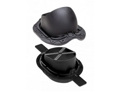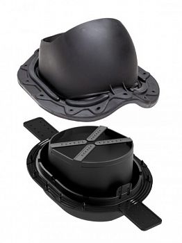 Проходной элемент для металлочерепицы с профилем Monterrey (ширина волны ≈ 183,3 мм, длина профиля min 350 мм, высота профиля ≈ 39 мм). В комплект входит двухкомпонентный 2K -уплотнитель гидрозатвора, гарантирующий полную герметичность прохода через гидрозащитную пленку.