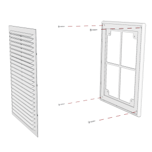 Благодаря съёмной лицевой части, разъёмная решётка Р позволяет без демонтажа всего изделия производить ревизионный осмотр и очистку вентиляционного отверстия.