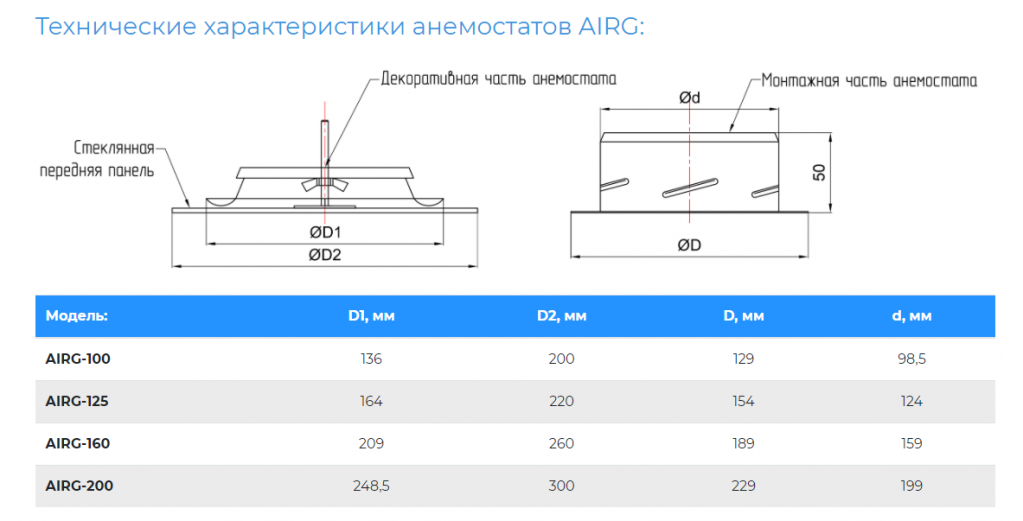 Передняя панель анемостатов AIRG изготавливается из осветленного стекла.
