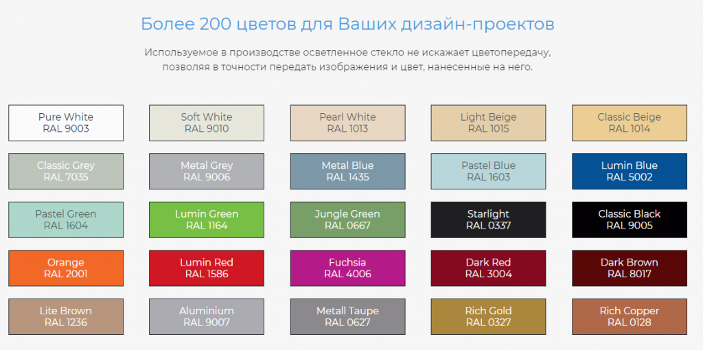 • не искаженная цветопередача, позволяющая в точности передать изображения, нанесенные на стекло;