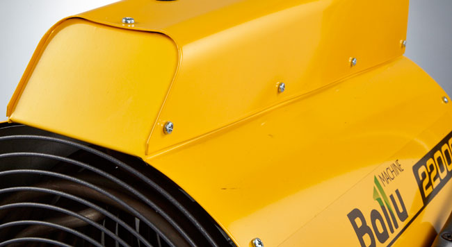 В цилиндрическом корпусе пушки нагревательные элементы особой формы способствуют созданию более эффективного направленного воздушного потока. В пушке предусмотрено два режима мощности и режим вентиляции. Обогреватель питается от сети 400В и имеет трёхфазную вилку на корпусе, что обеспечивает простоту и удобство подключения.