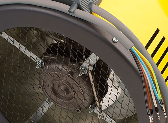 Пушка оснащается промышленным пылевлагозащищенным вентилятором в металлическом литом корпусе.